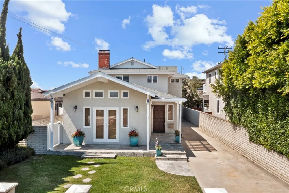South Redondo Beach Beauty in the Avenues! Quiet & private end of cul de sac location yet also walking or biking distance to The Village of South Redondo. Formal entry with mudroom/drop zone opens to the living, dining and kitchen. Natural light streams through the windows and the skylights. The living room boasts the first of two gas fireplaces, vaulted ceiling and spacious dining area. Open to the living and dining room, the kitchen is built to entertain - yet also feels cozy! Enjoy the custom cabinetry, LG refrigerator, Viking gas range with pot filler and Viking hood, butcher block counters, marble tile backsplash plus a solid surface island with a sink and to top it off a full pantry closet. Just around the corner yet tucked away is a home office/library with a 2nd gas fireplace. Down the hall is a guest bathroom, stairs to the 2nd floor and additional storage plus access to the attached single car pull through garage. A must see is the huge bonus room/den at the back of the house with vaulted ceilings and windows plus custom doors to the backyard. All bedrooms are upstairs. Two bedrooms share a full bathroom and both have access to the deck that spans the entire width of the home. The primary suite is a retreat with vaulted ceilings, walk-in closet & en-suite bathroom with jetted tub plus shower. Sellers meticulously remodeled the entire home for their needs including installing solid ¾ inch OAK flooring throughout the entire home and a Central HVAC complete with HEPA/Hospital grade filtration system. Tankless water heater installed 2023. The bonus Shed, which looks like a mini two story house in the back yard can also be utilized as an additional office space/flex space. Long driveway accommodates several cars or an RV and two cars. There are views from the primary bedroom of Palos Verdes on the south side plus views from the 2nd floor deck to the north of the neighborhood including July 4th fireworks! Top notch Redondo Beach Unified Schools!