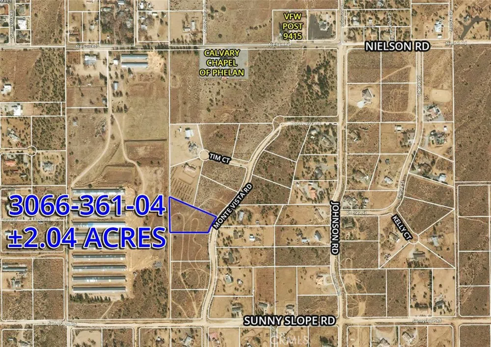 APN 3066-361-04 is a parcel on the west side of Monte Vista Road, north of Sunny Slope Rd. Adjacent to an established home at the northwest corner of the site and there are existing homes across the street with power, buyer to verify all utilities. Multiple Rural Residential Lots For Sale in the beautiful rural area of Phelan, San Bernardino County, CA. Enjoy spacious parcels with plenty of room for private, quiet living in an established rural neighborhood. Views of distant mountains to the south make this a desirable place to make a home. Quick access to grocery, conveniences and schools.